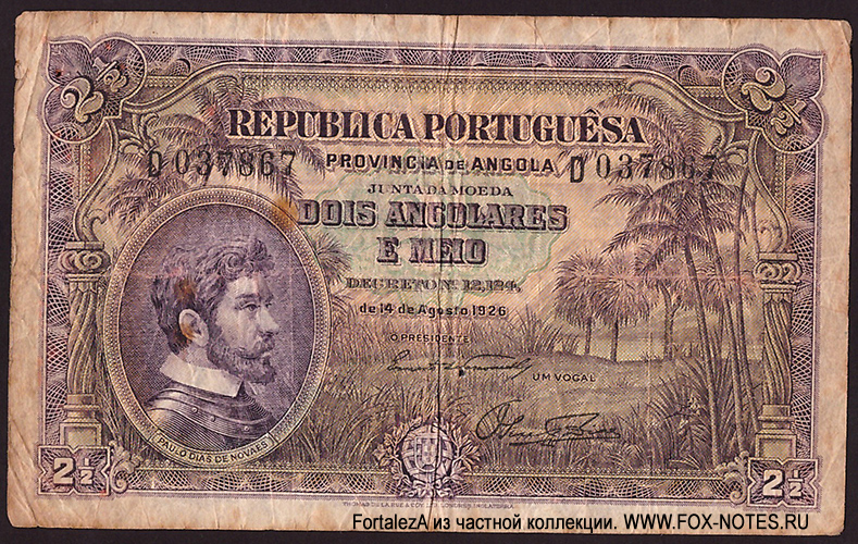 1.1. Emission: Portuguese West Africa. Provincia de Angola - Junta da Moeda. Issue 1926, based on decree - DECREE NO. 12.124 - 14.8.1926.