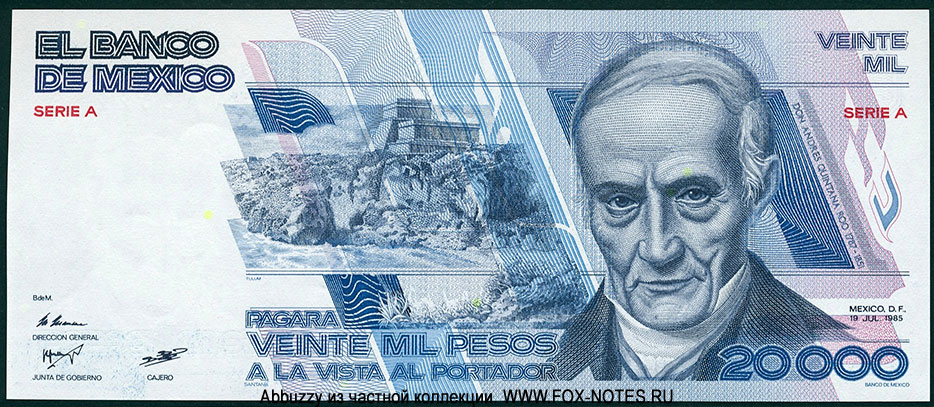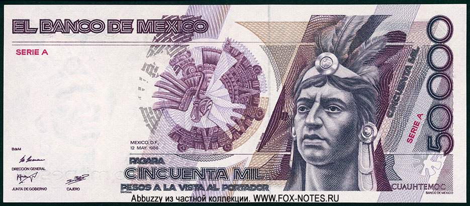 1.1. Issue: United States of Mexico. Issues Banknotes Banco de México Type A (1978) Type A banknotes were in circulation until December 31, 1992, canceled on January 1, 1996.