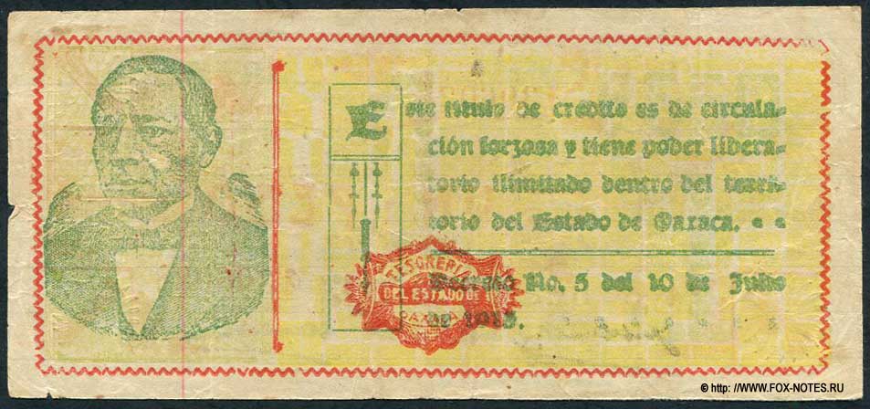 333333-La Tesorería General del Estado de Oaxaca 1 peso 1915/BANKNOTE MYeKSIKA-444444