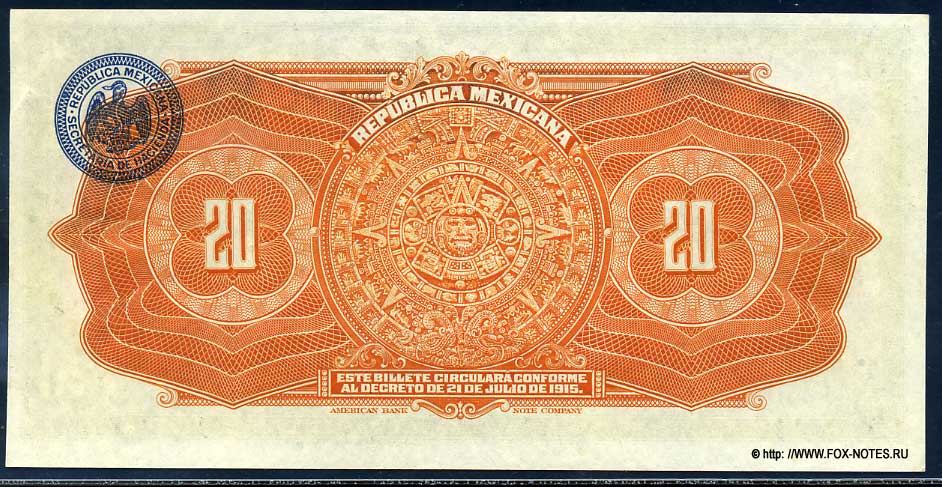 333333-Gobierno Constitutionalista, República Méxicana 20 pesos 1915/BANKNOTE MEXICO 20 pesos 1915/BANKNOTE MYeKSIKA-444444