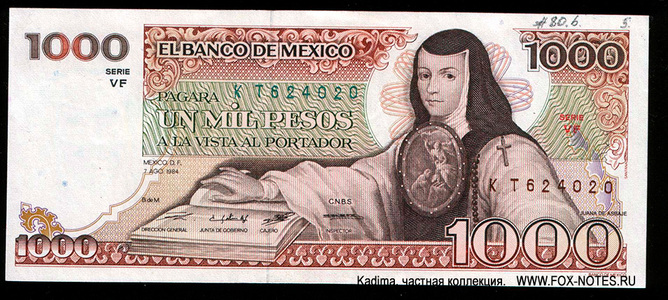 1000 pesos - 30 OCT. 1984. SERIA VW. Letter M.