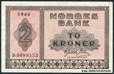 333333-Bargaining chip 2 krona. Skillemyntsedler 2 Kroner 1944">NORGES BANK 1 krona 1944 Norway-444444 banknotes 333333-Bargaining chip 2 krona. Skillemyntsedler 2 Kroner 1944