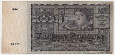 Oesterreichische Nationalbank. Banknote. 1000 Schilling 1930.