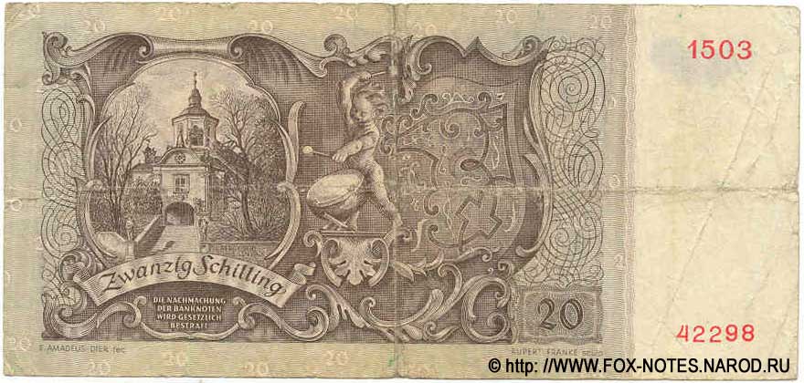 Oesterreichische Nationalbank. Banknote. 20 Schilling 1950.