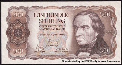 Oesterreichische Nationalbank. Banknote. 500 Schilling 1965