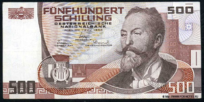 Austrian National Bank. 500 shillings banknote 1985.