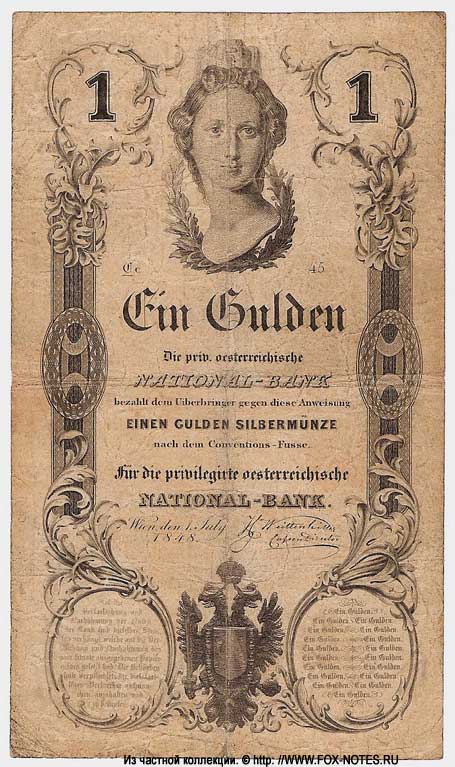 Privilegirte Österreichische National Bank. Banknote. 2 Gulden 1848.