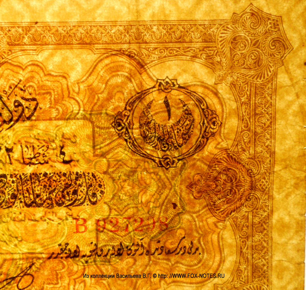 REFERENCE: Ottoman Supreme State. Administration de la Dette Publique Ottomane. 5th banknote issue. 04.02.1332 (17.02.1917)