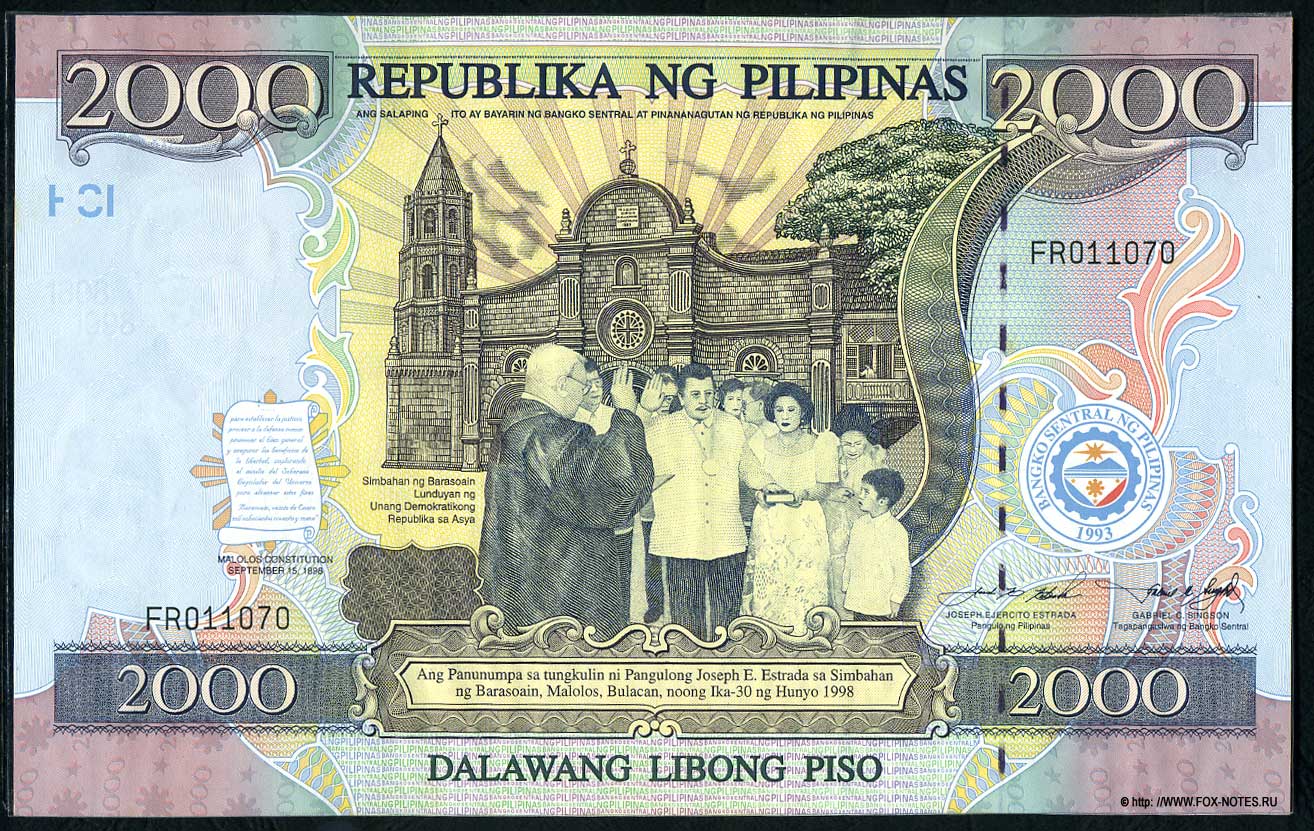 Bangko Sentral ng Pilipinas. Note. 2000 Piso. "Centennial Commemorative Banknote" 1998