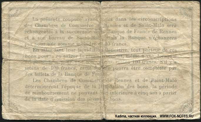 Chambre de Commerce de Rennes & De ST Malo. Catalog of paper banknotes -222222