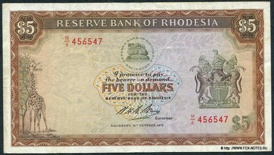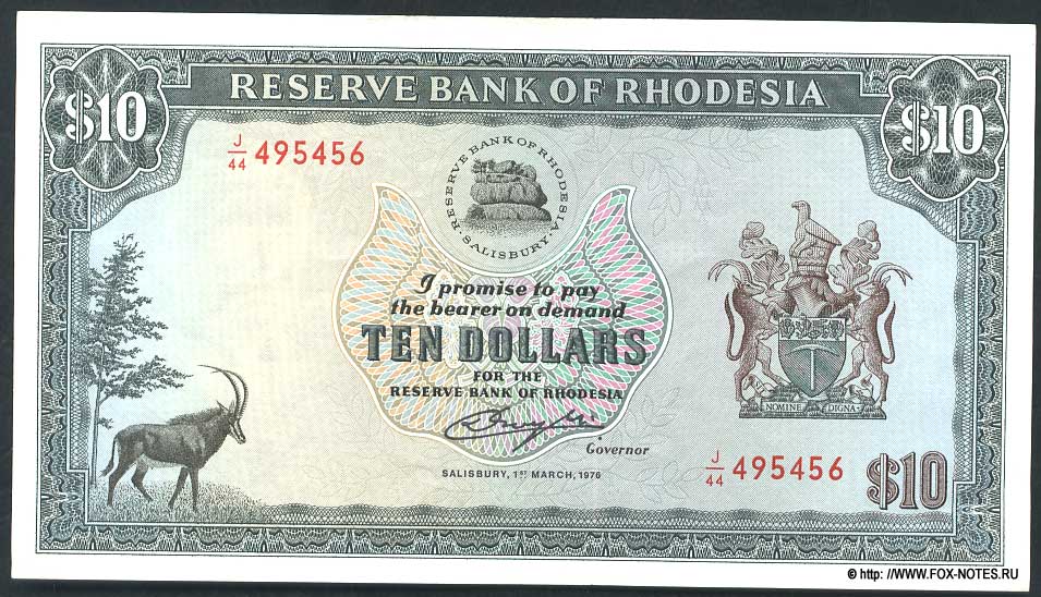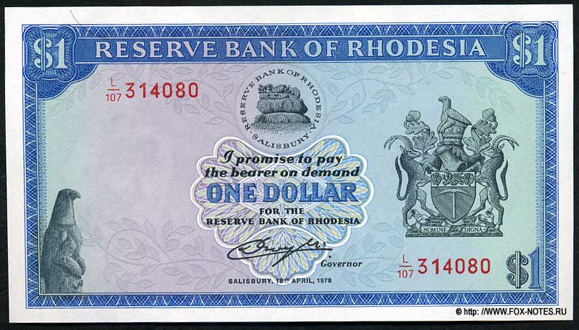 1.1. Emission: Rhodesia. Reserve Bank of Rhodesia. Banknotes 1970-1979.