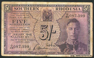 Souther Rhodesia Currency Board 5 shillings 1948