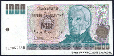 333333-BANCO CENTRAL de la República Argentina 1000 pesos argentinos 1981-444444