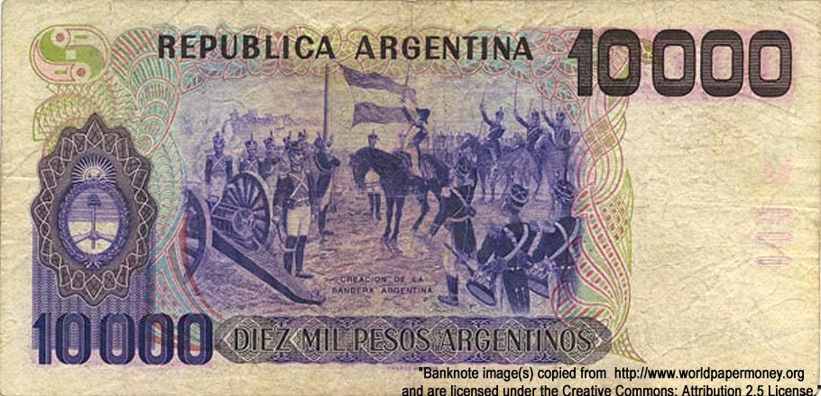 REFERENCE: Banknotes BANCO CENTRAL de la República Argentina. Issues 1983-1985. Peso Argentino Argentine banknote options by signature, numbering box type