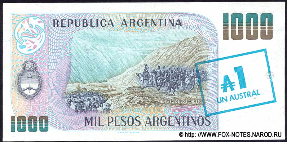 REFERENCE: Banknotes BANCO CENTRAL de la República Argentina. Issues 1985-1991. Austral Argentine banknote options by signature, numbering box type