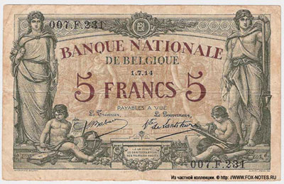 REFERENCE: Banknotes of the National Bank of Belgium (Banque Nationale de Belgique) issues from 1851 to 1914