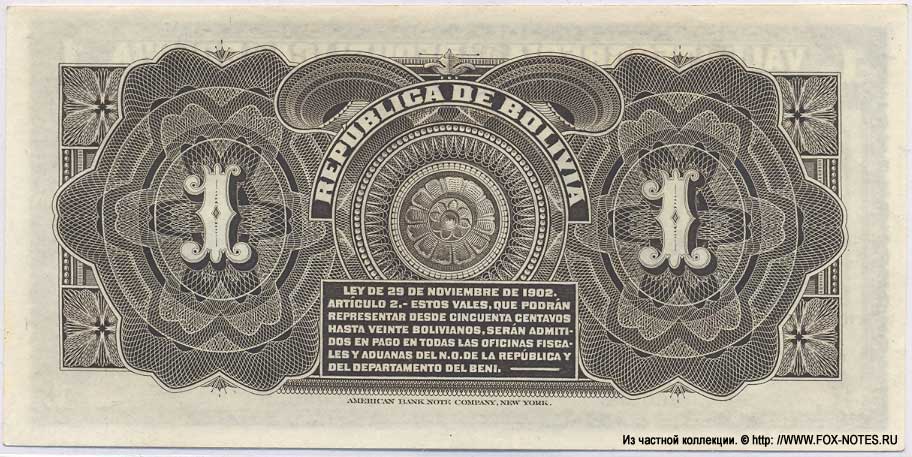 Issues of TESORERIA DE LA REPÚBLICA DE BOLIVIA. Republic of Bolivia. Issue 1902