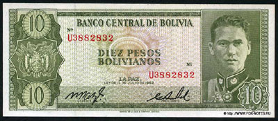 333333-BANCO CENTRAL DE BOLIVIA 10 pesos bolivianos 1962-444444