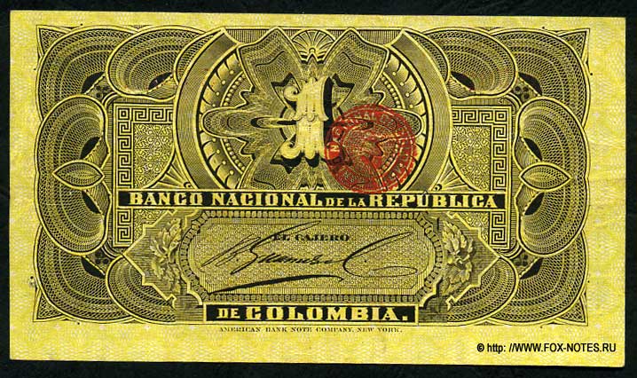 REFERENCE: Issues 1881-1900. Банкноты - Banco Nacional de los Estados Unidos de Colombia, Banco Nacional de Colombia, Banco Nacional de la República de Colombia.
