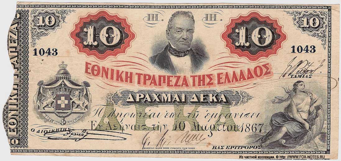 333333-Kingdom of Greece 10 drachma 1867 banknote-444444