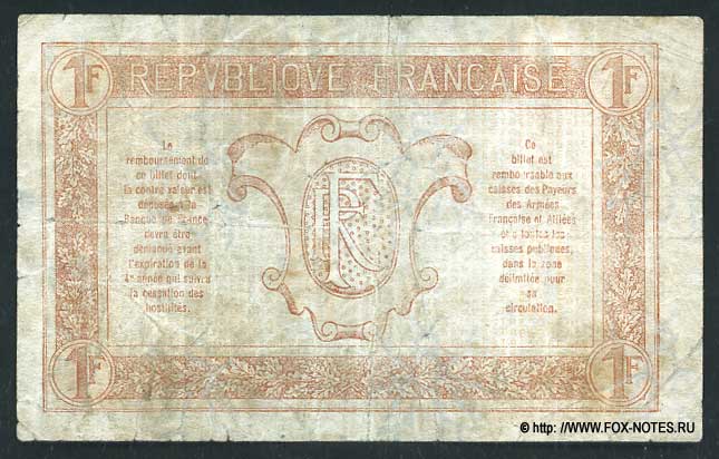 REFERENCE: Issues 1917,1919 for the Military Treasury (Tresorerie aux Armees). World War I. cat. # P cat. # F face value year Description/Notes OBVERSE REVERSE