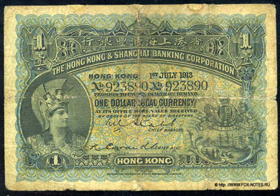 333333-Hong Kong & Shanghai Banking Corporation 1 dollar 1913-444444