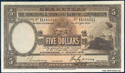 333333-Hong Kong & Shanghai Banking Corporation 10 dollars 1938-444444