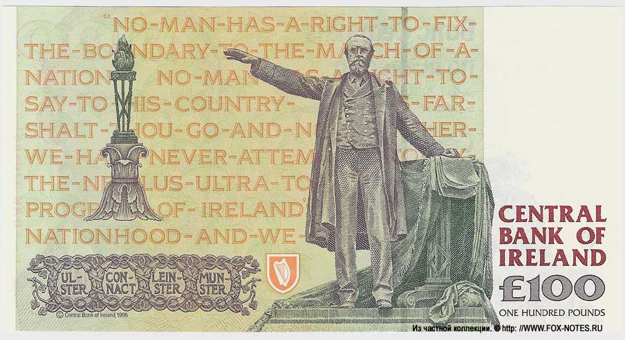 REFERENCE: Banknotes of Ireland. Irish banknote variants by date. The section is currently common to all banknotes in Ireland.