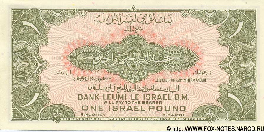 1 Palestinian pound - ND (1948). Pdps.: S.Hofien, A.Barth.