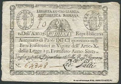 6.7.1798-4.9.1798. 10 paoli = 100 baiocci