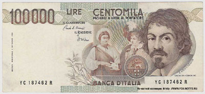 BI.925sp P:110a 100.000 lire L.1983 1986 A Series XA.. A. Replacemen.
