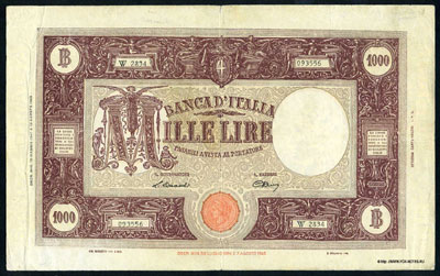 Variants: 1000 lira sample 1896 g "Big Letter M" by date.