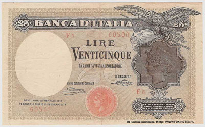 333333-Banca d'Italia 25 lire 1919-444444