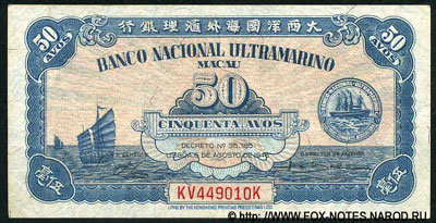 333333-Banco National Ultramarino Macau 50 avos 1948-444444 333333-Banco National Ultramarino Macau 100 patacas 2005-444444