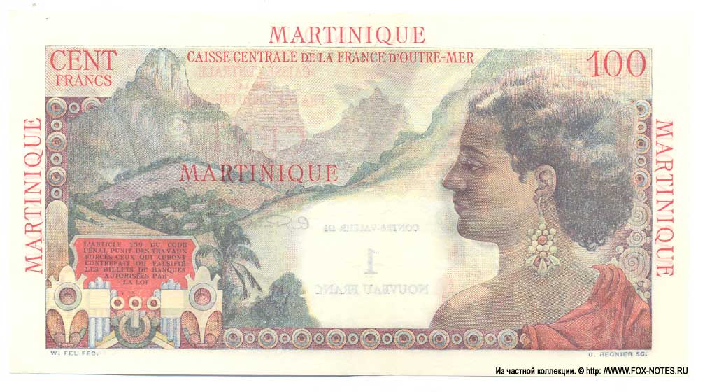 Cheque. Issue 1952 (NDHR. "MARTINIQUE" ) Issue 1960 (NDHR. "MARTINIQUE" ) Issue 1960 (NDHR. "MARTINIQUE," denominated in new and old francs)