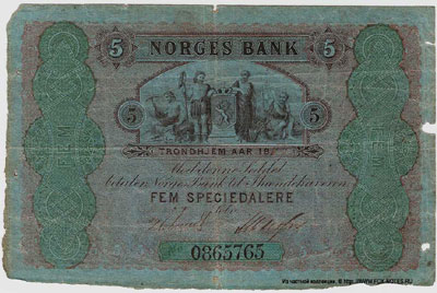 333333-NORGES BANK Banknote 5 dalers 1869-444444