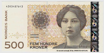 333333-Norway NORGES BANK 500 kroons banknote 2002-444444