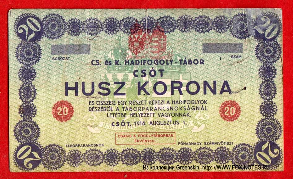 - Österreichisch-Ungarische Monarchie (Austro-Hungarian Empire) Banknotes of prisoner of war camps. World War I