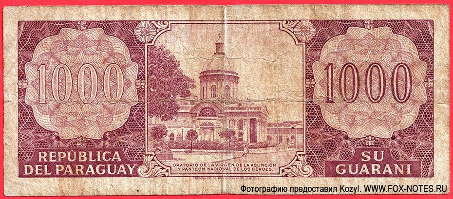 1000 guarani - L. 18 del 25 de Marzo de 1952. Пдпс.: Augusto Colmán Villamayor,  César Romeo Acosta