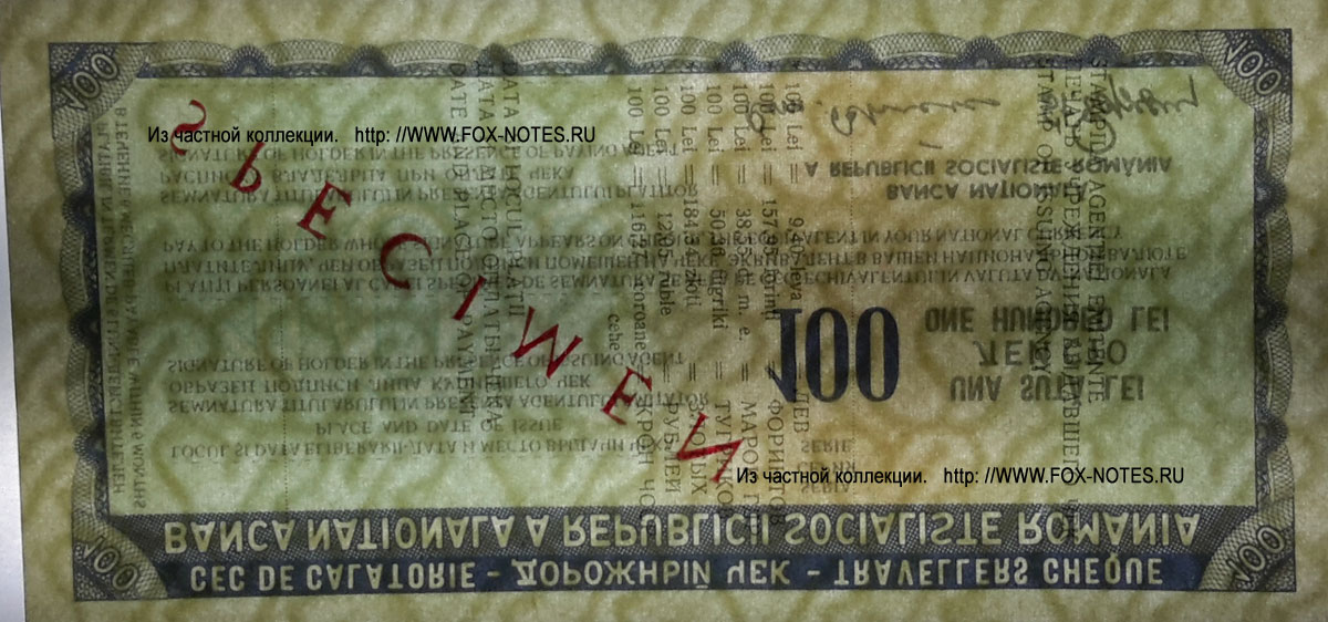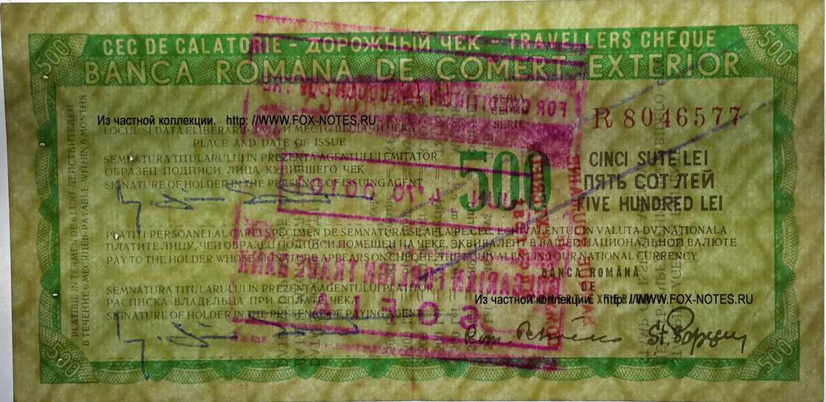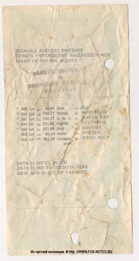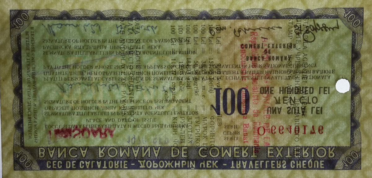 REFERENCE: Traveller's cheques of the Bank for Foreign Trade and the Central Bank of Romania .
