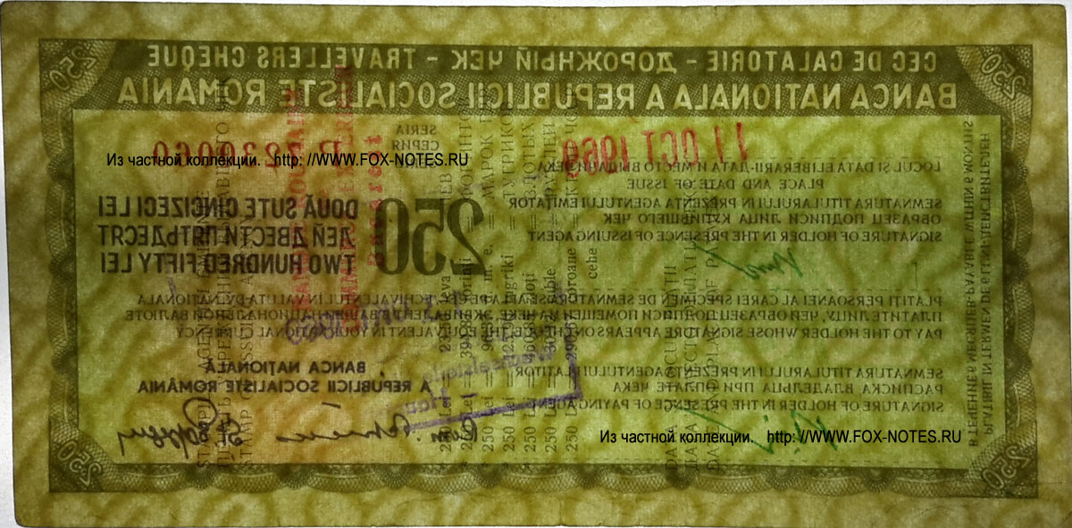 250 lei - v/s horizontal letters RRP (read with RV) in a row, refer to FIG