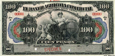 333333-El Banco Agricola Comercial 100 pesos 1913-444444