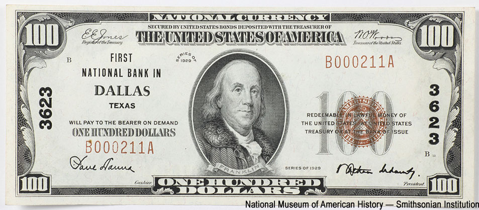 1.1. Issue: First National Bank in Dallas Texas Charter number 3623. Dallas, Texas.. National Bank Notes. USA.