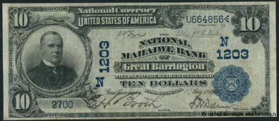 333333-The National Manhaiwe Bank of Great Barrington 10 dollars 1902-444444