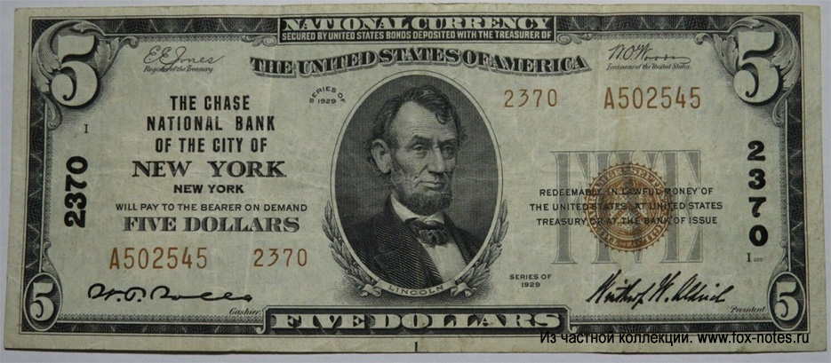 333333-The Chase National Bank of the City New York 5 dollars 1929-444444