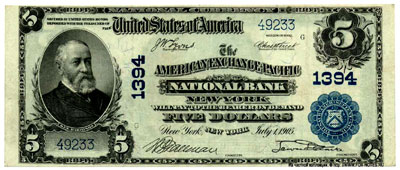 333333-The Americanexchange-Pacific National Bank New York 5 dollars series 1902-444444