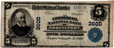 333333-The Commercial National Bank of Shereveport 5 dollars 1902-444444