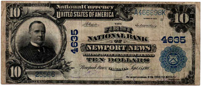 333333-The First National Bank of Newport News 10 dollars 1902-444444
