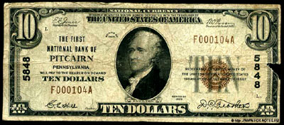 333333-The First Nacional Bank of Pitcairn 10 dollars series 1929-444444