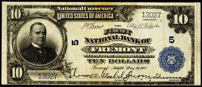 333333-The First National Bank Fremont 10 dollars Series 1902-444444
